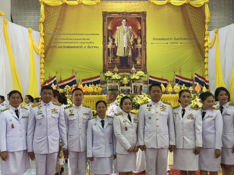 พร้อมข้าราชการตำรวจ สภ.ส่องดาว ร่วมพิธีวางพานพุ่มดอกไม้ภวายราชสัการะ ณ หอประชุมที่ว่าการอำเภอส่องดาว ตำบลส่องดาว อำเภอส่องดาว จังหวัดสกลนคร